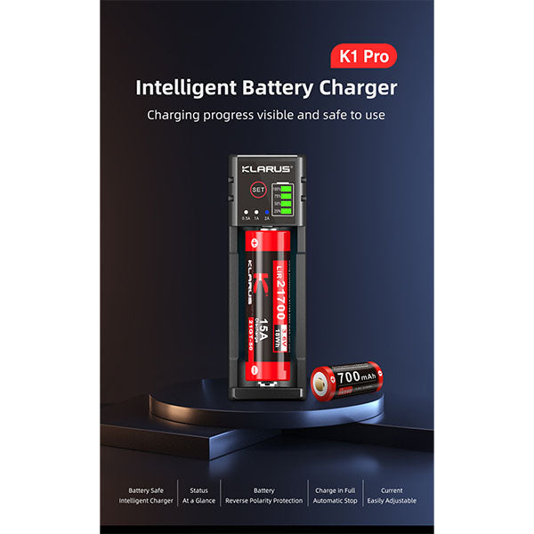 Das KLARUS Akku Ladegerät K1-PRO überzeugt Sie mit innovativer Technologie und bietet schnelle und problemlose Akku Aufladungen, die ganz einfach über die Mikrocomputer Steuerungstechnik vorgenommen wird. Sie können alle geeigneten Akkus laden und sich auf eine Performance verlassen, die Ihnen im Einsatz Vorteile und Sicherheit in der Funktionalität Ihrer Taschenlampe ermöglicht.